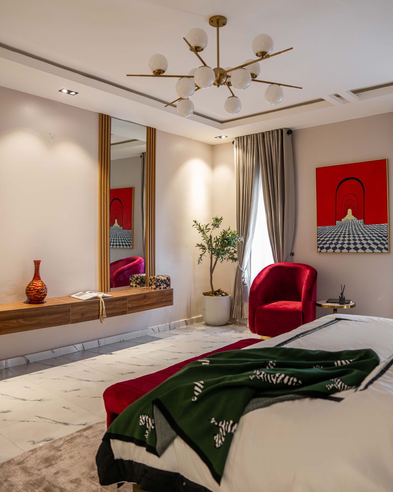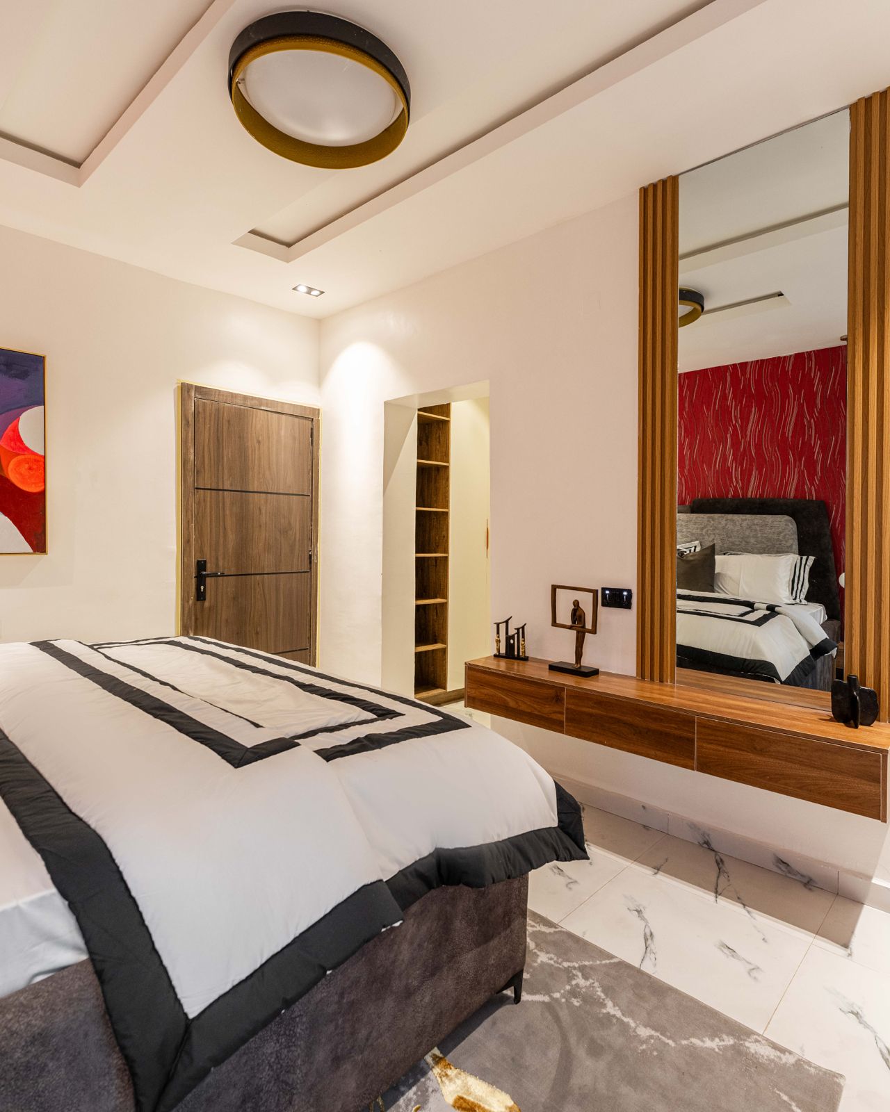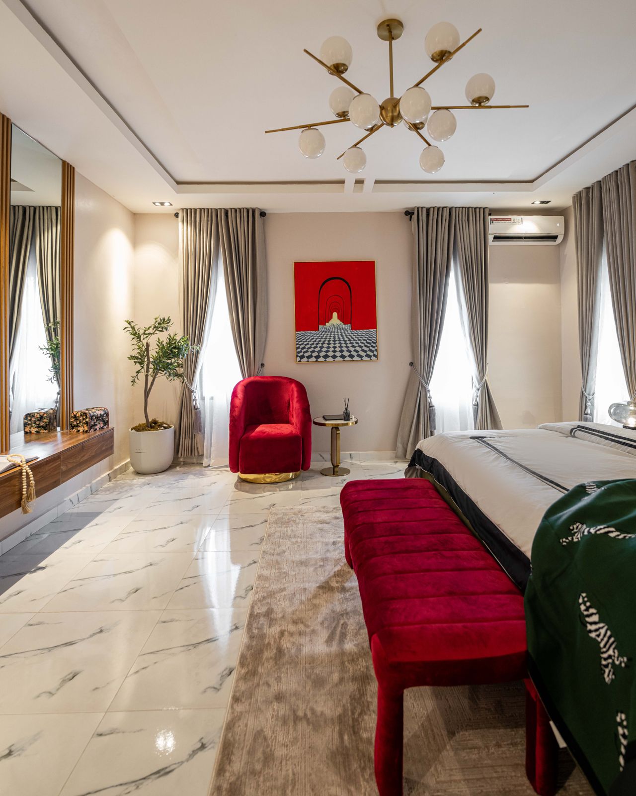 Tucked away in the quiet charm of Umudike, Abia State, PRJ J-VILLA is a private sanctuary of refined living. This 5-bedroom mansion, featuring a penthouse roof and an adjoining 3-bedroom bungalow, was designed as the client’s country escape, where elegance, comfort, and timeless luxury coexist in harmony.